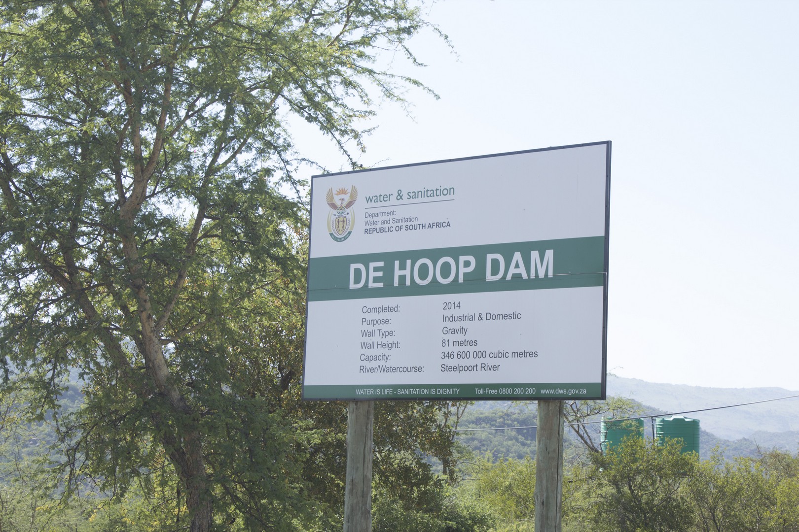 Ntsoageng is a historic tree where churches prayed for rain in the area, with a well that has been there for ages and still exists.De Hoop Dam